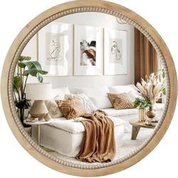 Sawsile Round Decorative Circle Farmhouse Style Mirror - 24inch Rustic Natural Wooden Frame Beads for Bedroom, Bathroom, Living Room or Entryway$ 45$45Virginia Beach, VA
