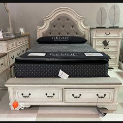 Whitewashed Realyn Modern Farmhouse Style Queen Upholstered Bed With Footboard Storage🤩 Brand New ✅$1,199Norfolk, VA