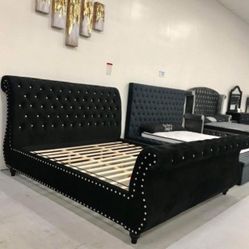 King/ Queen Bed With Storage Black Velvet π Color OptionsπIn Stock β