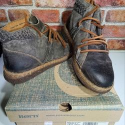 Born Temple II Distressed Dark Grey Boots Shoes Leather Ties Womens Size 7.5M $45Chesapeake, VA