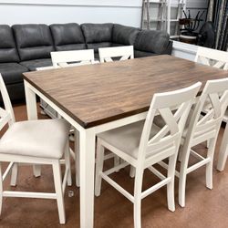 White/Dark Brown Farmhouse Style Counter Height Dining Table And Bar Stools💥 Showroom Available 👍🏻 Fastest Delivery 🤩$1,289Suffolk, VA