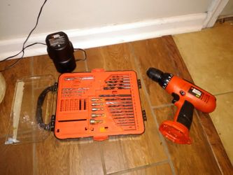 9.7 volt black and decker drill with drill kit and battery with charger$35Virginia Beach, VA