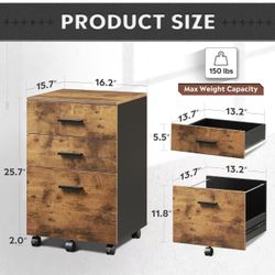 3 Drawer Wood Mobile File Cabinet, Rolling Filing Cabinet for Letter/A4 Size, Rustic Brown$30$30Virginia Beach, VA