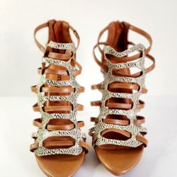 🆕️ LUXURY REBEL WEST CAGED SNAKESKIN HEELS SIZE:39 Latte/Natural buff$30Chesapeake, VA