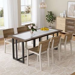 Modern Dining Table for 6 People, 71" Large Kitchen Table with Faux Marble Tabletop $70$70Virginia Beach, VA