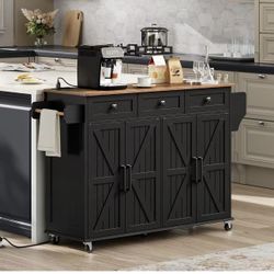 Kitchen Island with Drop Leaf & Power Outlet, Rolling Kitchen Island Cart On Wheels, Barn Door Kitchen Island Table with Storage, Island Table for Kit$140Virginia Beach, VA