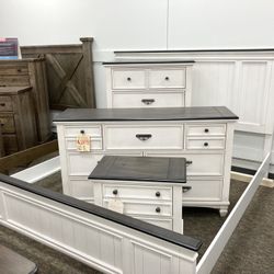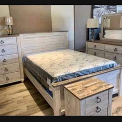 7 Piece Queen Sized Whitewashed [nightstand, Dresser,mirror,panel Bed] Bedroom Set💯 New Brand 🆕 $39 Down Payment 🤩On Display🏠$1,339Virginia Beach, VA