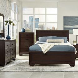 👑Queen Size Dark Colored Panel Bed( headboard, 2drawer storage footboard and rails) Dresser, Mirror, Nightstand 👑 Bedroom~comedor 💥 New Brand🆕$1,319Newport News, VA
