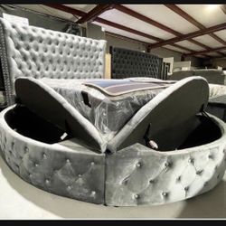 Queen Size Round Bed Frame With Storage Gray Velvetπ Color Options π Delivery Avilable β