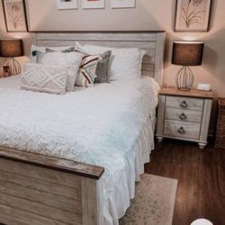 Whitewash 7 Pc Wood Queen Bedroom Set π Queen Panel Bed, 2-drawer nightstands, 6-drawer dresser with mirrorπ Brand New π₯ In Stock β