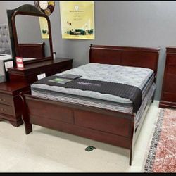 Solid Wood Brown Bed Frame, Night Stand, Dresser, Mirror 6 Piece Bedroom Set π₯ Showroom Available π Financing Options β