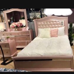 Rose Pink Gold Queen Size Bedroom Set ( Bed Frame, Night Stand, Dresser, Mirror) βοΈ Showroom Available π$2,499Newport News, VA