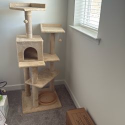 Cat Tree with 47.2" Dual Litter Box Enclosure, 63.4" Tall Multi-Functional Tower for Cats, Hidden Litter Box Enclosure Furniture, with Feeding Bowls, $120Virginia Beach, VA