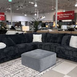 AP🎉Black Huge Jumbo Corduroy Cozy Sectional Couch With Chaise// Financing & Delivery $2,268Chesapeake, VA