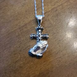YGI 925 Sterling Silver Black Rhinestone Cross w/Praying Hands Necklace$50Virginia Beach, VA