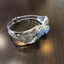 Elegant Sorrento Sterling, Italian Designer Clamper Cuff hinged filigree bracelet w/ blue stones, stamped โsterlingโ$99Chesapeake, VA