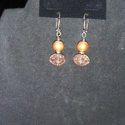 Handcrafted Peach Bead Dangle Drop Earrings Silver