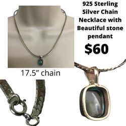 925 Sterling Silver Chain Necklace with Beautiful Stone Pendant$60Chesapeake, VA