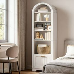 Arched Bookshelf with File Drawer, 71" Tall Narrow Bookcase for Small Spaces, 6-Tier Arched Bookcase with Storage and Adjustable Shelves,Farmhouse Boo$100Virginia Beach, VA