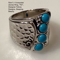 Size 5, 4 turquoise stones Ring, “FD”, Designer Felicia Designs, Sleeping Beauty$50Chesapeake, VA