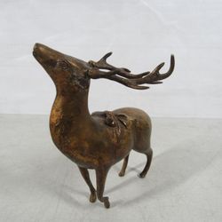Reindeer 8 Point Buck Vintage MCM Solid Brass Home Decor Statue 7" Tall