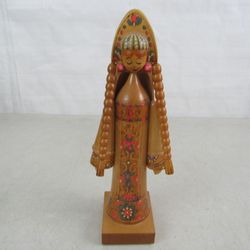 Vintage Russian Handmade Wooden Folkart Traditional Doll 9 1/2" Tall