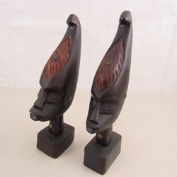 African Native Tribal Folkart Hand Carved Wood Sculptures Pair