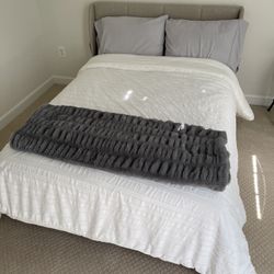 king size grey linen upholstered platform bed frame$275Wheaton-glenmont, MD