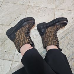 Designer Brown & Black FF Logo High-Top Boots Size 40/US9$120North Springfield, VA