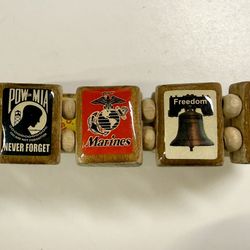 American Patriotic Armed Forces Wood/Enamel Tile Charms Stretch Bracelet$19Norlina, NC