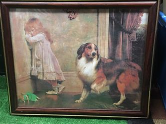 Little girl with collie print glass framed$15Newport News, VA