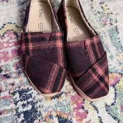 TOMS Women's Plaid Flannel Flats Slip-On Burgundy Red Black Round Toe Size 9$22Norfolk, VA