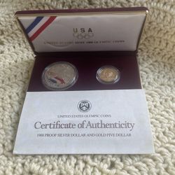 1988 Olympic Coins U.S. Mint Proof Set, $5 Gold, $1 Silver, With Box & COA$950Chesapeake, VA