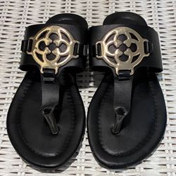 Women’s Size 36 Size 5.5 Black Sandal Thong Flip Flop W/Gold Metallic Design $5Hampton, VA