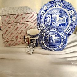 Spode Blue Italian Plate, Saucer, Mugs (4) $80Virginia Beach, VA