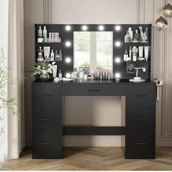 Mirror, Power Outlet and 10 Lights, Makeup Table with 7 Drawers, 3 Color Modes Available for Bedroom, Black$160$160Virginia Beach, VA