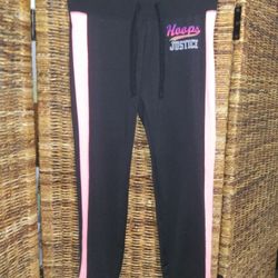 Justice Girl's Size 14 Black Joggers Hoops Orange Side Stripe