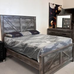 AP๐ Gray Crossbuck Panel Bedroom Set- 4-Piece (Bed, Dresser, Mirror, Nightstand)Fast Delivery - Financing $934Norfolk, VA
