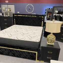 Black Upholstery Bedroom Furniture Set Dresser, Mirror, Nightstand, Chest, Mattress, Bed ๐๏ธ Queen & King โญ$39 Down Payment with Financing โญ 90 Days s$39Chesapeake, VA