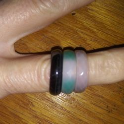 3ct Glass Green Black Gray Stackable Rings Size 7