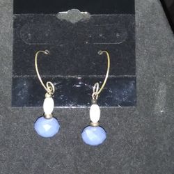 Handcrafted Blue White Bead Dangle Drop Earrings Silver