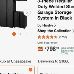 Husky 3-Piece Regular Duty Welded Steel Garage Storage System in Black$550Suffolk, VA