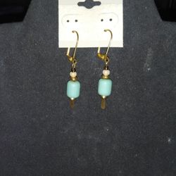 Handcrafted Goldtone Turquoise White Brown Bead Dangle Drop Earrings