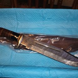 10.5" Bowie Knife Damascus Steel Blade With Leather Sheath $50Staunton, VA
