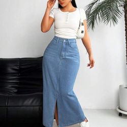 Women's Fashionable Simple High Waist Slim Fit Split Denim Midi Skirt$67Harrisonburg, VA