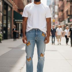 mnml Butterfly Print Jeans — Size 34 — Light Wash, Button Fly$40Woodbridge, VA