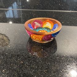 Folk Art Carved Mexican Bowl Wood Glazed Painted Flower 5” Wide 2” High$20Stafford, VA