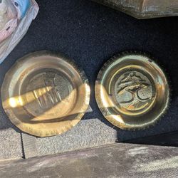 Solid Brass Decorative Plates, Set of 2, Vintage Lebanese Wall Hanging Art 10.75"$100Rockville, MD