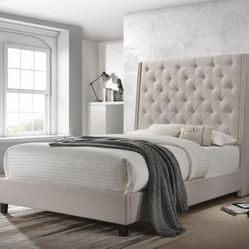 Vance Linen / Wood Grey King Bed (3 Boxes)