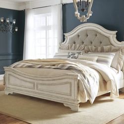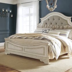 Realyn Chipped White King Panel Bed